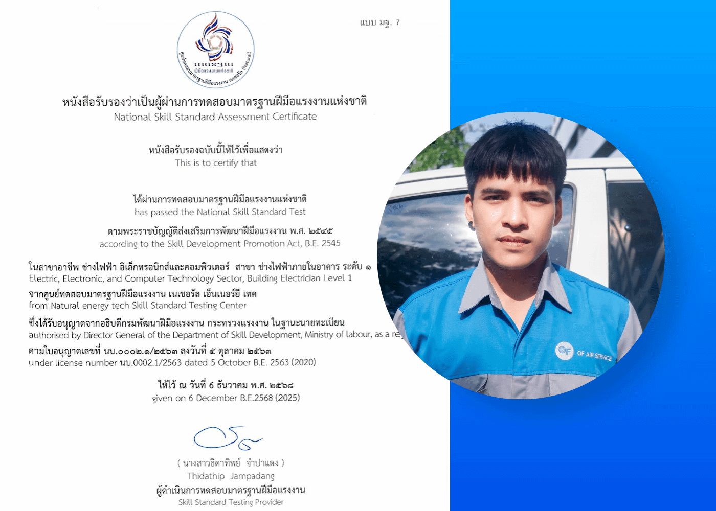 หนังสือรับรองผ่านการทดสอบมาตรฐานฝีมือแรงงานแห่งชาติ