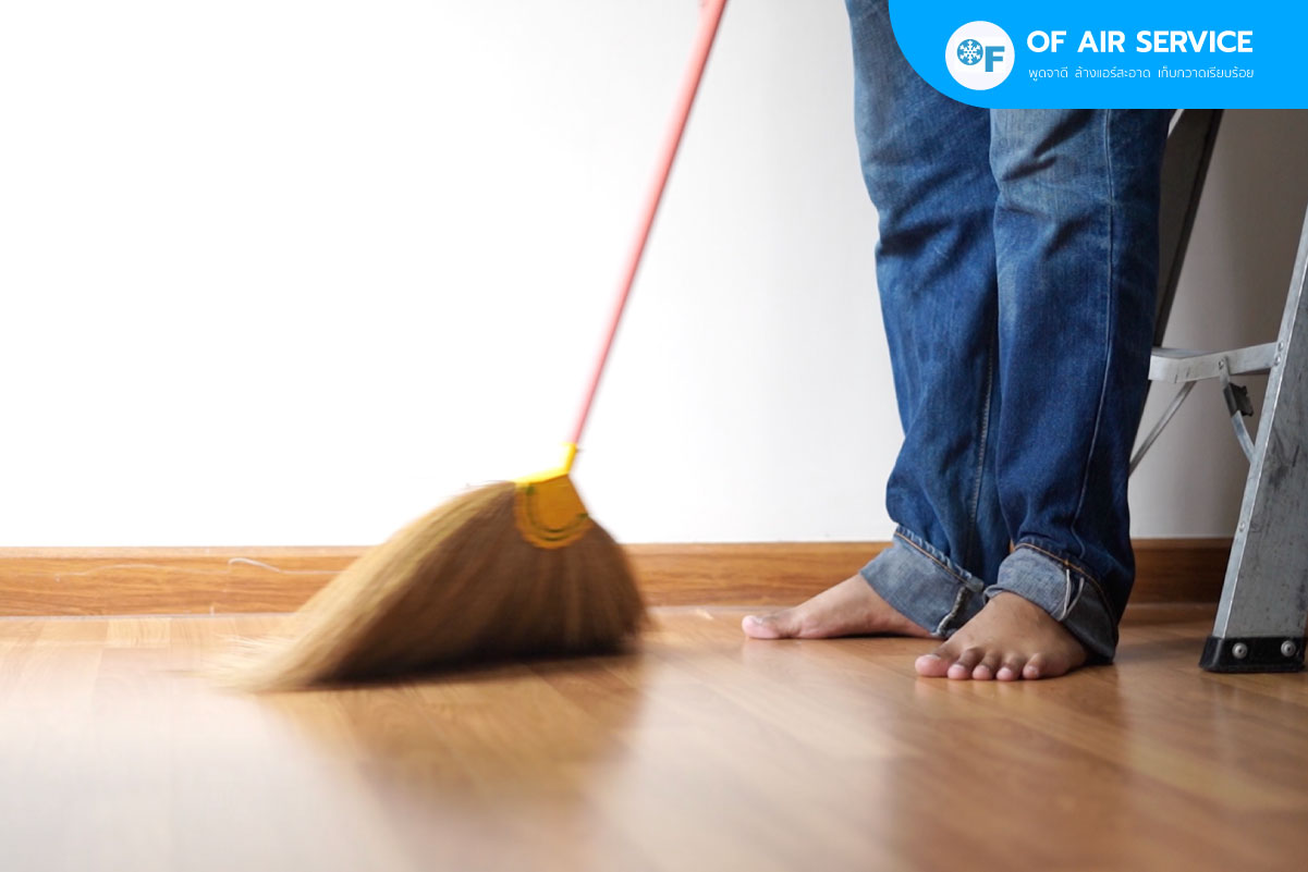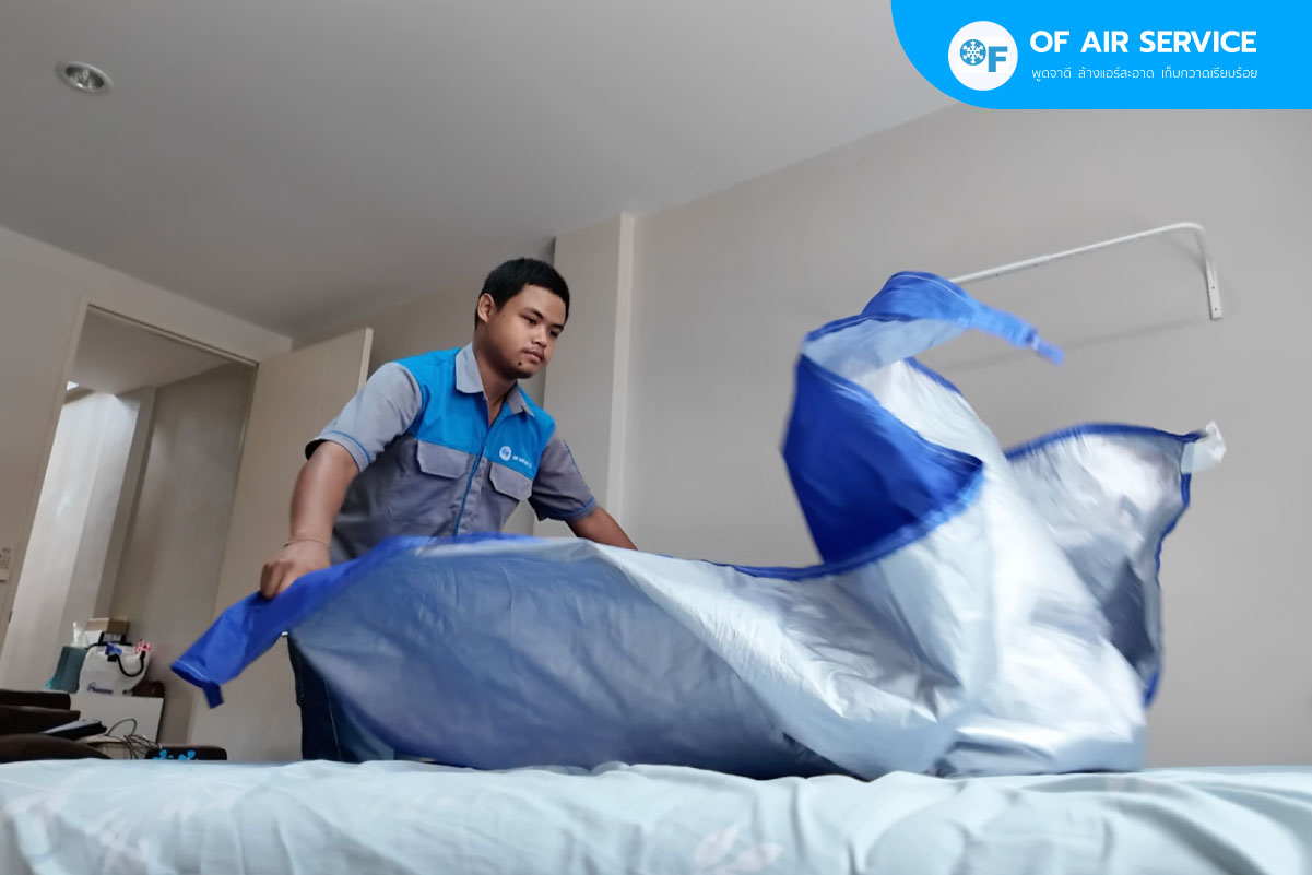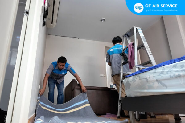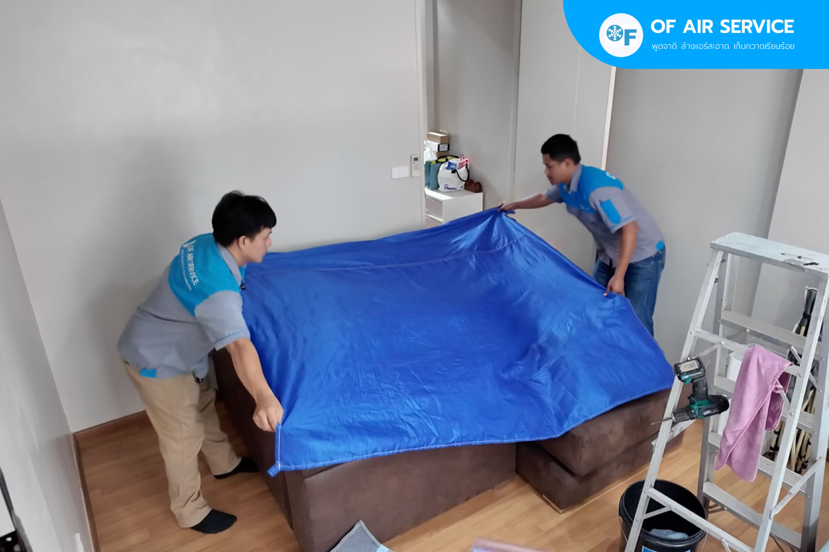 เพื่อป้องกัน พื้นห้อง จากรอยขีดข่วน - คลุมแอร์ ด้วยผ้าใบล้างแอร์