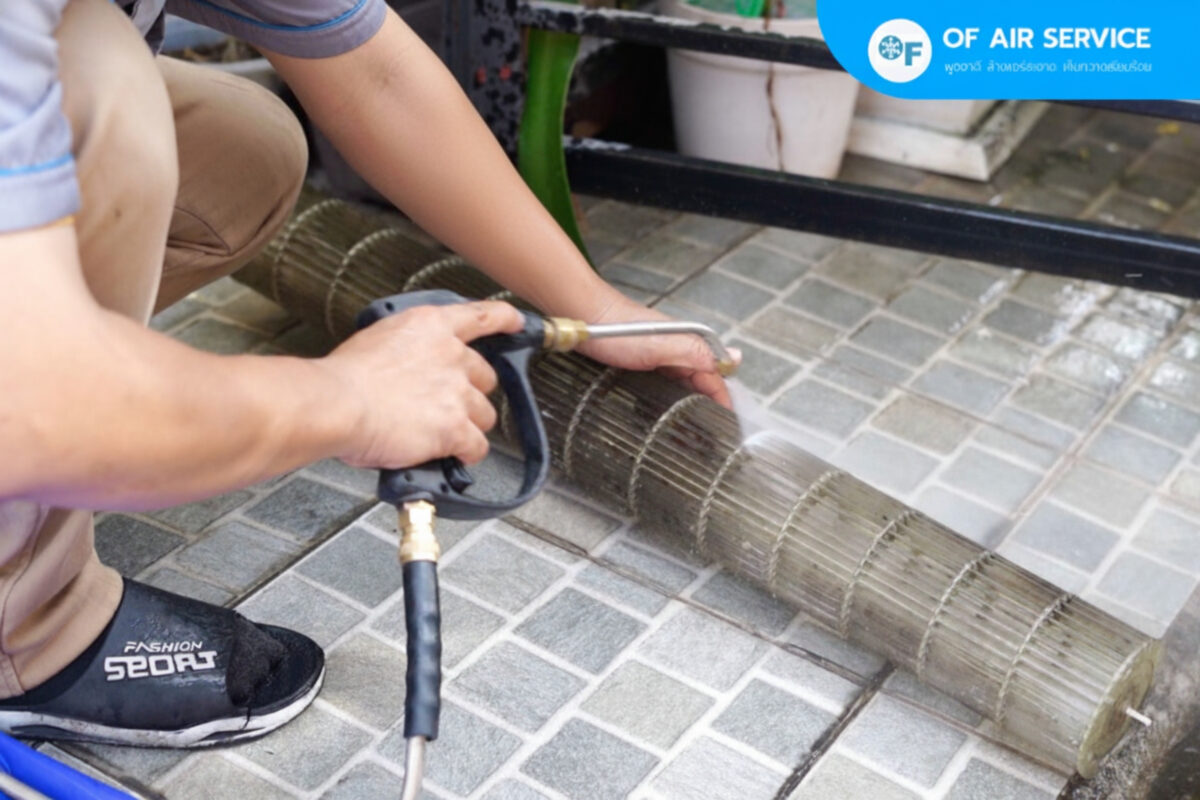 - ล้าง แผงคอยด์ร้อน ทั้งภายในและภายนอก ด้วยน้ำแรงดันสูง